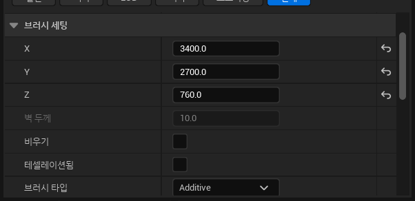 Walls 를 복사해 같은 크기의 WallSubtract를 만든후, Walls의 크기에 200씩 더해준다.
