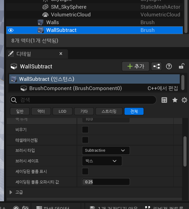 WallSubtract의 브러시 타입을 Subtractive로 변경해준다.