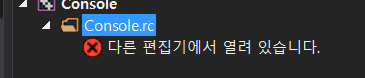 .rc 파일을 클릭해서 리소스뷰를 보려고 하면 다른 편집기에서 열려있습니다. 라는 오류를 종종 볼 수 있습니다.