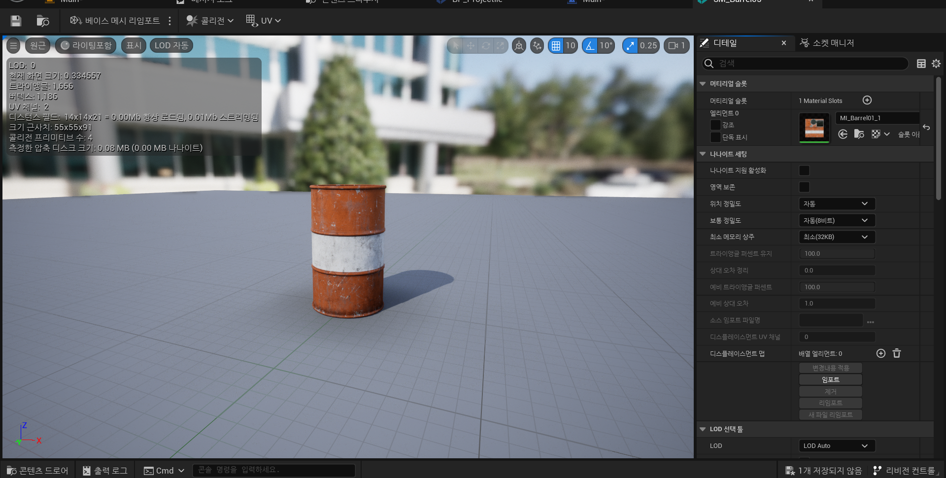 메시의 모양을 수정하기 위해서는 Content Drawer의 원하는 메시를 더블클릭하면, Static Mesh Editor가 나옵니다.