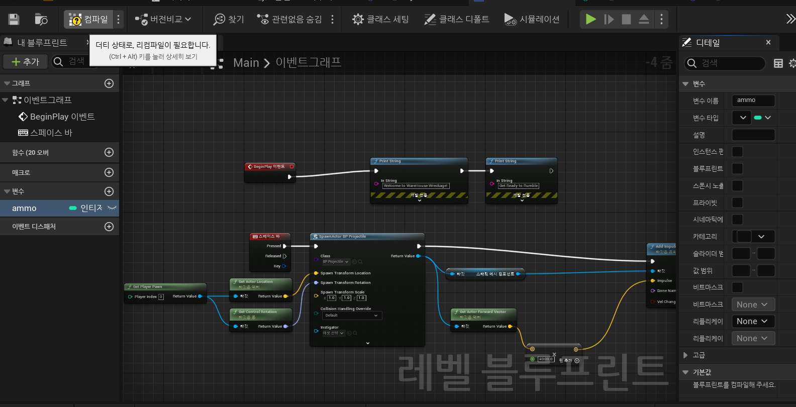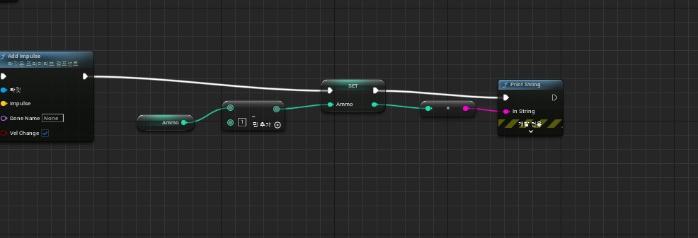 이를 응용하여, Spawn이 될 때 마다, ammo변수의 값을 -1씩 해주는 Blueprint를 작성할 수 있습니다.