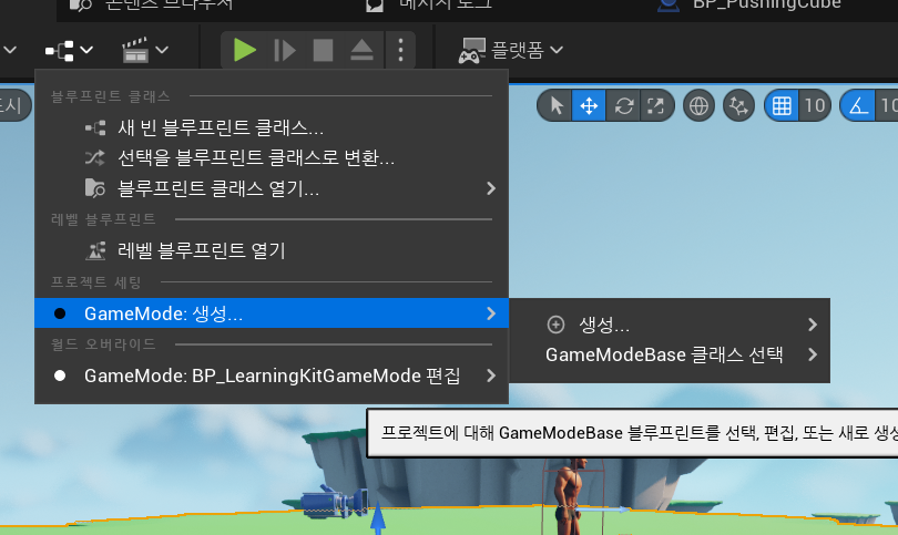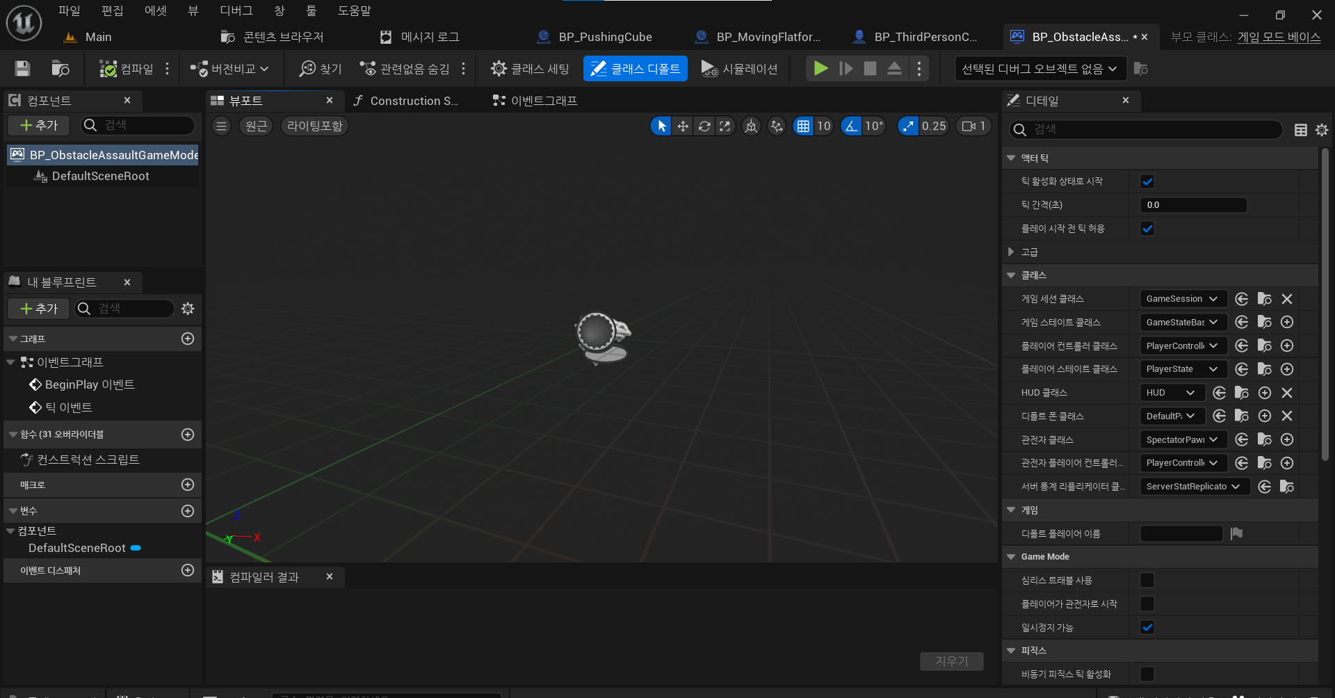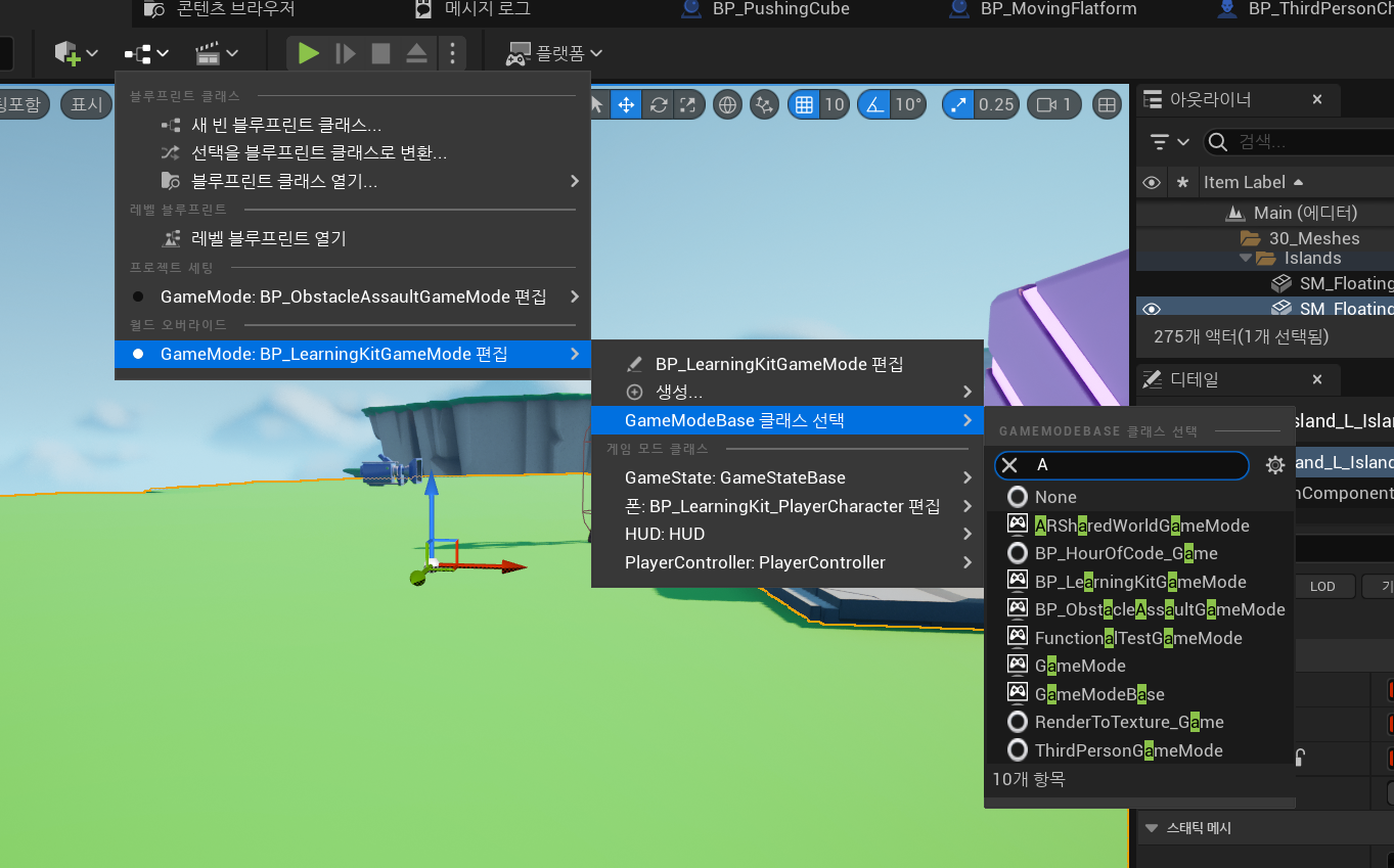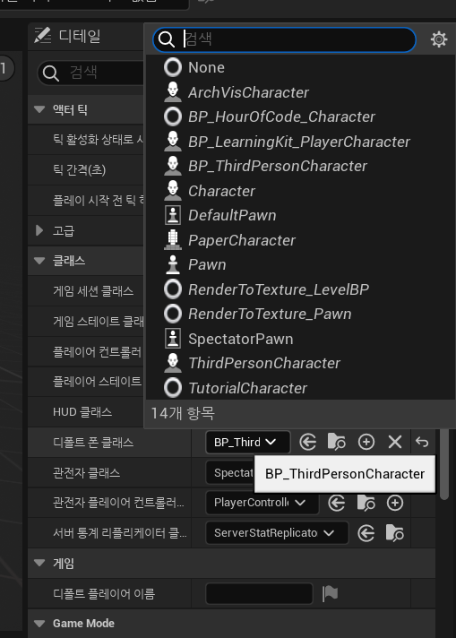 또한 월드 오버라이드 게임모드를 none으로 설정해주어야한다. 그래야 오버라이드 하지 않고 디폴트 모드로 게임세팅이 되기 때문이다.
