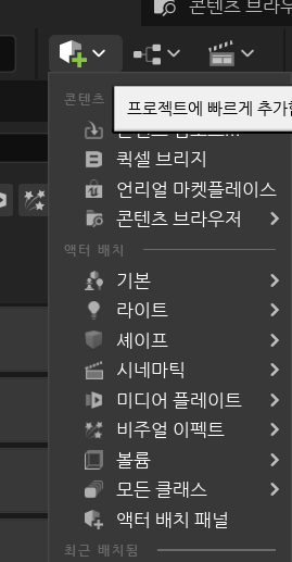 그 후, 기존 플레이어를 지우고 액터 배치패널을 열어 플레이어 스타트를 추가해주면 여기서 플레이 버튼을 이용해서 게임 테스팅을 진행할 수 있다.